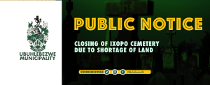 Ixopo cemetery is running short of space for burial. However, the cemetery remains ready for, in appropriate circumstances, the second internment. Residents are encouraged to consider other options to save as burial space, such as second interment in accordance with the municipality’s Cemetery Bylaws.
