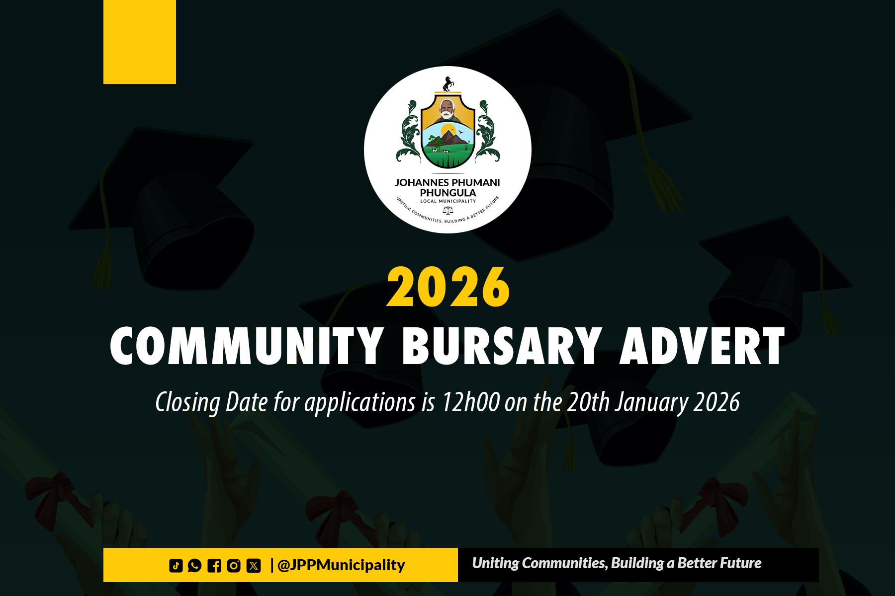 Johannes Phumani Phungula Municipality is offering Financial Assistance to the first year deserving students and current existing bursary holders enrolled at recognised Tertiary Institutions.